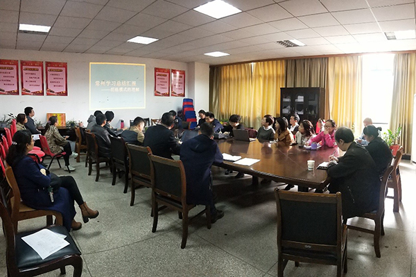 刘灿勋院长介绍了在常州机电职业技术学院参加湖南省国培项目高职院校专业带头人研修班的学习情况,并作了“胡格模式的理解”的主题发言。胡格模式是德国巴登符腾堡州知名职业教育专家托马斯·胡格教授及其团队创立的教学模式,是对教学理念、课程体系、教学设计与实施、师生关系、教学评价等五个基本元素进行重新组合和调整,其要义是重构职业院??翁媒萄?,核心思想是采用鲜活的教学组织形式和教学方法,开展沉浸式体验学习。刘院长分别从“行动型”教学理念、“递进式项目化”教学内容整合、“三明治式”的教学设计与实施、“合作型”师生关系营造、“可视化”教学评价体系构建五个方面详细介绍了胡格模式的理念以及在教学中的具体运用。