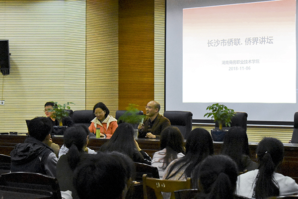 讲座中,刘斌介绍了长沙市侨联协会的概况和主要工作。而后,吴灿结合其留学和旅行经历进行了讲述。吴灿说,旅行不是只有单纯欣赏美景的作用,还能扩充我们的视野。吴灿讲述了其在撒哈拉沙漠、冰岛、老挝、北极等地的旅行经历,介绍了当地的民风民俗和特色景点,鼓励同学们来一场不一样的旅行。“脚步是尺,丈量世界,也度量人生。”吴灿认为,旅行是一种修行,可以到不同的地方认识不同的人,看不一样的风景,以一种谦卑、怜悯的心去感受万物。