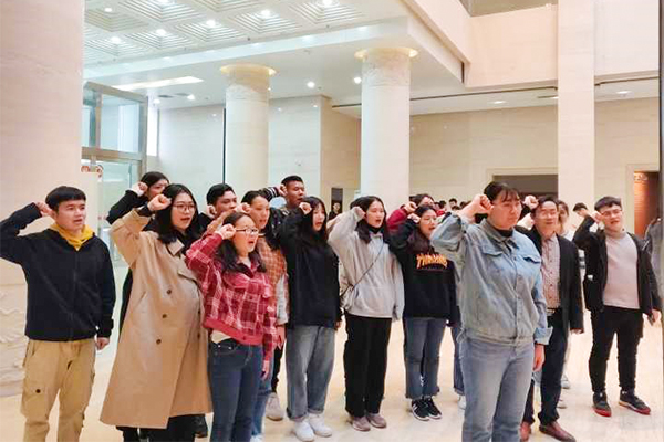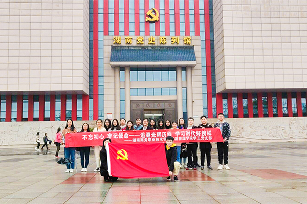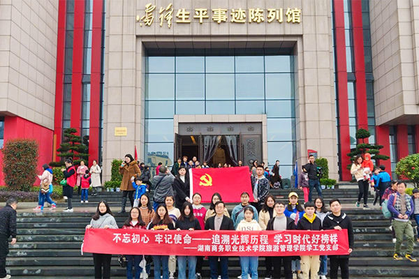 当天上午,旅游管理学院学工党支部书记欧阳序华带领学生党员及部分入党积极分子一行来到湖南党史陈列馆。在陈列馆大厅,全体学生党员举起右手重温入党誓词。