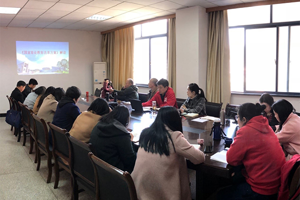 其次,电商学院党总支副书记、院长曾鸣带领党员深入学习《国家职业教育改革方案》的主要内容,指出职业教育是培养高素质劳动者和技术技能人才,阐明了新时代职业教育的使命和职责,就是要为经济高质量发展培养更多大国工匠和能工巧匠;并对贯彻落实方案提出了建议,我们要按标准建设,作为党员要看到做到想到,使命神圣、责任重大。