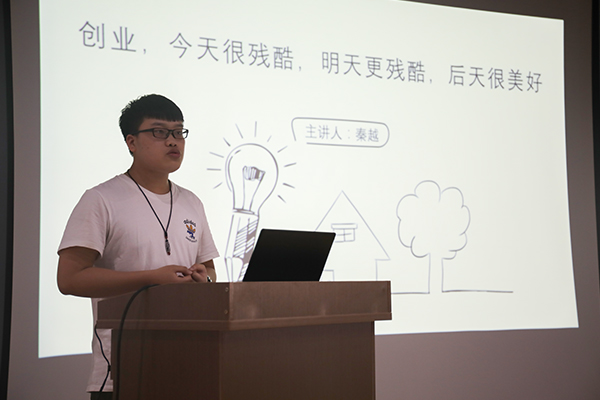 最后秦越发言道,创业今天很残酷,明天更残酷,后天却很美好?;菇彩隽俗陨泶匆导栊辆约胺窒砹舜笱匆邓拇缶椋涸鹑危哿?,坚定,不怕死。并强调创业需要想法,需要发挥自己的能力,创业更是一个不断学习与完善自己的过程,创业的成功与否离不开自身的努力。