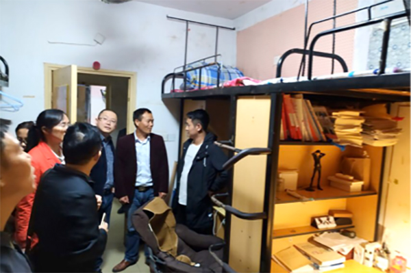 在不忘初心,牢记使命主题学习教育活动中,会计学院党总支深入学生群体,着力推动会计学院学生党员宿舍文明示范岗工作,以此推动学生社区文明建设。2019年10月15日,会计学院党总支书记石辉金带领所有总支委员深入学生宿舍7栋、附3栋督查学生党员宿舍示范岗建设情况。