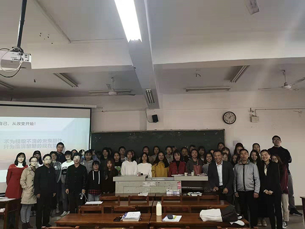在不忘初心,牢记使命主题学习教育活动中,会计学院党总支深入班级了解班级班会开展情况和班级建设,关心同学们的思想成长历程和心里诉求,以此推进学生思政工作更好更快发展。2019年10月29日下午,会计学院党总支书记石辉金、柳志院长带领所有总支委员来到了18级会计9班的班会现场,全程参加该班班会?;嵘细冒喔ǖ荚碧凡咏坷鲜ξ冒嗳逋狭艘惶靡?ldquo;做更好的自己”为主题的班会,班会结束前总支书记石辉金同志对班会进行了点评,会后合影留念。