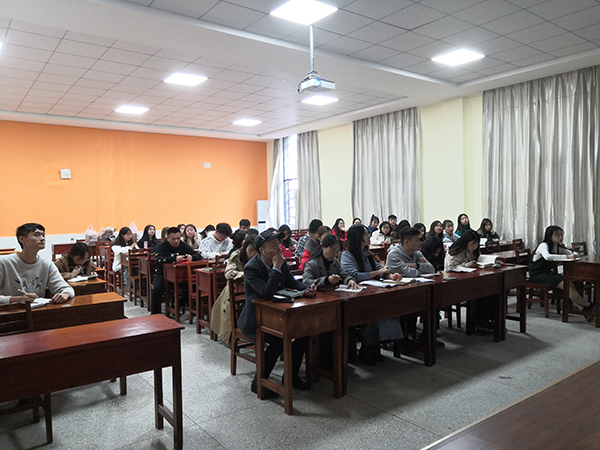 ?。ㄍㄑ对?唐惠)11月19日下午,经济贸易学院学工党支部组织全体党员在二教101经贸学院分党校教室开展学习贯彻党的十九届四中全会精神主题党日活动。