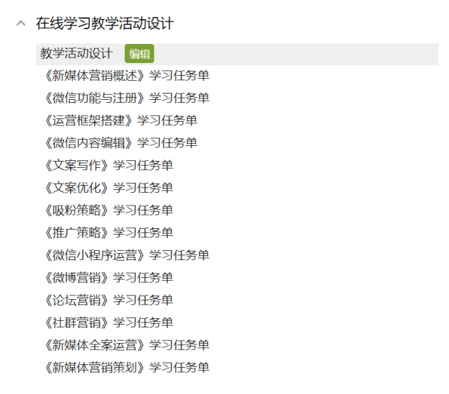 《新媒体营销》是基于互联网、智能手机、微博和微信等新媒体形态的发展而开设的一门新兴的课程,自2016年起,黄慧化致力于新媒体营销理论研究和实践应用,立项了2016年湖南省职业院校教育教学改革项目,带领教研团队开发了本门课程的教学资源,包括31个教学视频、305个文本资源和525道习题,是湖南省高等职业教育省级精品在线开放课程建设项目。