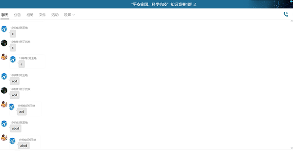 本网讯(通讯员 刘洋凡)为进一步加大新冠肺炎病毒防疫知识的宣传力度,提高全体同学的防护意识,5月12日中午,电商学院团总支通过网络平台举办以“平安家国 科学抗疫”为主题的线上知识竞赛活动。电商学院18、19级共计36名代表参加本次比赛。
