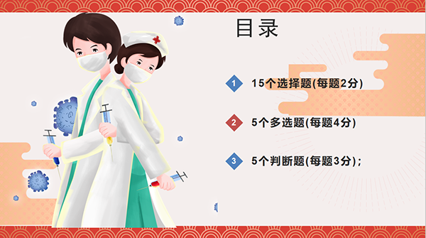 此次知识竞赛采取线上抢答的模式,从新冠肺炎病毒的传播途径、临床表现、易感人群、防疫措施等多个角度,综合考察同学们对防控疫情知识的掌握程度。同学们在紧张的抢答中也深入学习了习近平总书记关于新冠肺炎疫情防控的重要讲话精神。最终,19移商1班李伊琳等10名同学在此次比赛中取得优异成绩。