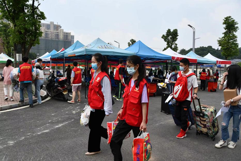 活动现场,志愿者们尽心尽力地帮助返校学生搬运行李。“同学,欢迎你返校!”、“同学,没关系,有什么需求就跟我们说”、“同学你好,我是志愿者,你的行李交给我吧”、“家长,请您放心!”同学们的赞美与感谢之声不绝于耳,“谢谢你,辛苦了!”、“感谢党员同志,向你们学习!”、“感谢志愿者,我也要加入到你们的队伍中去”……志愿者们不停穿梭的身影成为了校园里一道亮丽的风景,虽然口罩遮挡住了他们的脸,但爱心传递于每一句亲切的问候和每一个温暖的举动之间。