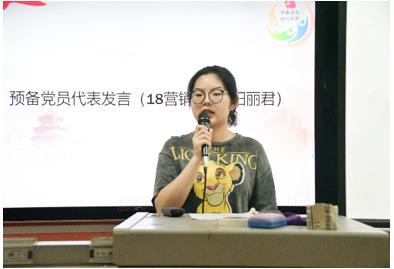 仪式伊始,铿锵有力的《国际歌》缓缓响起,全体起立。党员代表欧阳丽君上台发言,她以“端正入党动机”为切入点,强调积极分子应当时时刻刻以党员标准严格要求自己,不忘初心,持之以恒,努力成为一名合格共产党员而不懈奋斗。