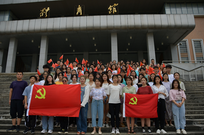 入党积极分子于6月28日在孔子广场、办公楼前庭以及体育馆进行合影,并齐唱《国际歌》,表达对党的热爱,献上自己最美好的祝福。