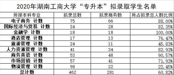 (通讯员 方嘉成)日前,2020年湖南工商大学“专升本”录取工作顺利结束,经济贸易学院97名学子成功上线,升入本科院校。