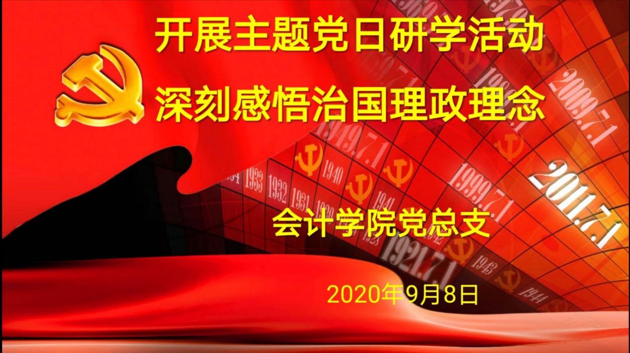 为贯彻落实中央宣传部、中组部印发的《关于认真组织学习<习近平谈治国理政(第三卷)>的通知》精神,2020年9月8日,会计学院党总支在二教201教室开展了以“开展主题党日研学活动,深刻感悟治国理政理念”为主题的学习《习近平谈治国理政(第三卷)》研学活动?;峒蒲г旱匙苤榧腔祁?、院长柳志,副院长许立兰、党总支副书记林达等全体党员与会,活动由组织干事、团总支书记朱泳霖同志主持。