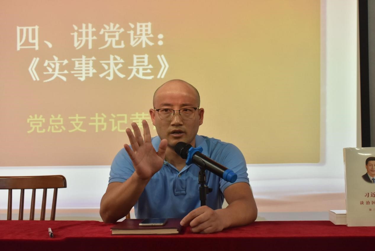 在党课《实事求是》中,黄铖谈到,“实事求是”是毛泽东同志为中央党校题写的校训,是马克思主义的精髓和灵魂。以《汉书》为源,再延伸到《道德经》等经典著作,本次党课引经据典,生动传神,让大家深刻领悟改革开放40多年里,中国共产党人治国理政的“实事求是”精神实质和科学实践。