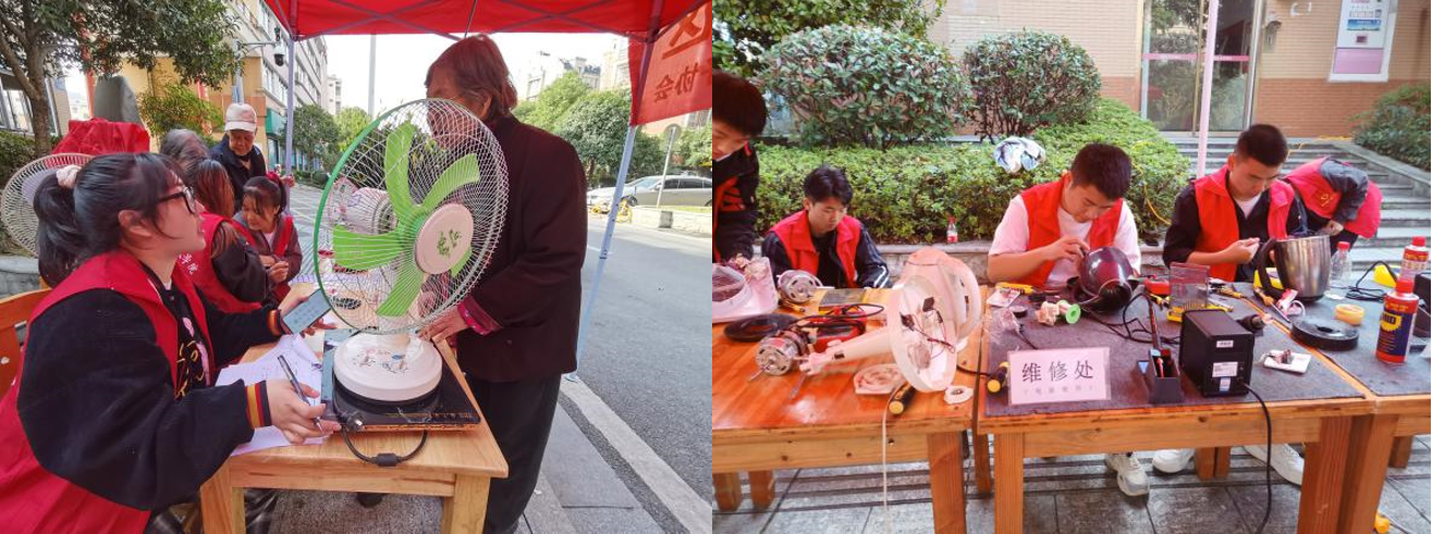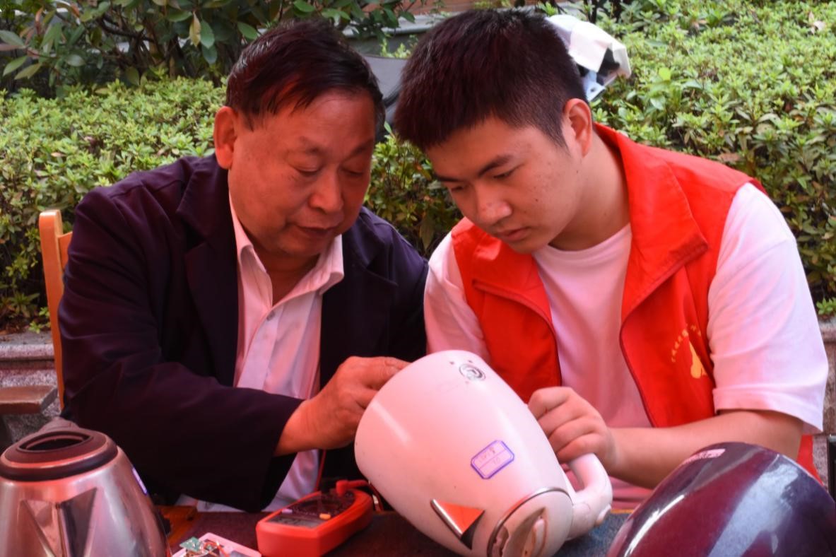 义务维修服务点一搭起来,就吸引到不少社区驻足询问,志愿者们不仅专业地解答了居民咨询的问题,还向着重就用电安全知识进行了普及和宣传,提高社区老人的用电安全意识,为社区老人的健康安全筑牢基础?;疃?,居民们纷纷带来了自己家里有故障的电风扇、水壶、插座等家电前来维修。在电子协会前指导老师罗大远的指导下,志愿者们耐心排查故障,让一件件废旧家电都“重获新生”,得到了社区居民的一致好评。