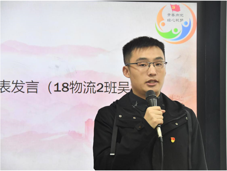 仪式上,预备党员代表18物流2班吴径舟同志结合自己的思想、学习和工作作表态发言,表达了将终生践行入党誓言,为党的事业奋斗终身的决心。同时,他还分享了自己由入党积极分子到预备党员的成长经历,激励在座的入党积极分子戒骄戒躁、不忘入党初心、不负韶华、奋力前行!