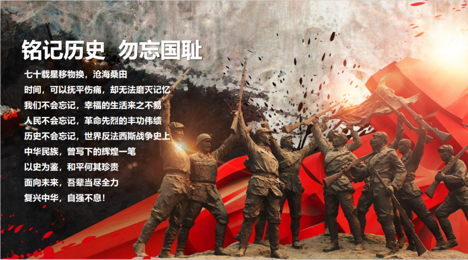 张志文首先为同志们介绍了中国人民抗日战争胜利纪念日的由来。他指出:中国人民抗日战争,是近代以来中华民族第一次取得完全胜利的反侵略战争和民族解放战争,是20世纪中国和世界历史上的重大事件,也是战争史上的奇观。2014年2月27日下午,十二届全国人大常委会第七次会议经表决通过,将9月3日确定为中国人民抗日战争胜利纪念日。