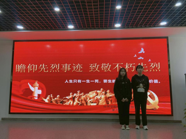 (通讯员 颜婷婷)为纪念反法西斯战争胜利75周年,2020年11月3日12:40,经济贸易学院学工党支部在办公楼5楼思政实践中心开展“瞻仰先烈事迹,致敬不朽先烈”主题党日活动。本次党日活动由第六党小组李梦微与杨嘉琴同志主持,支部全体党员、发展对象、18和19级入党积极分子共同参与。