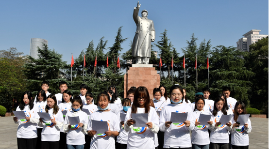 早上八点,党员同志们在各党小组组长的组织带领下,有序前往清水塘毛泽东杨开慧故居,准时抵达。沐浴着清晨的和煦阳光,同志们迅速在毛主席塑像前站好队形,右手握拳,在第五党小组张志文同志的带领下重温入党誓词,声音铿锵有力,倾述着对党的拳拳初心。随后,同志们声情并茂地齐诵《中华颂》,慷慨激昂的声音响彻纪念馆广场,引来不少游客的围观赞叹。
