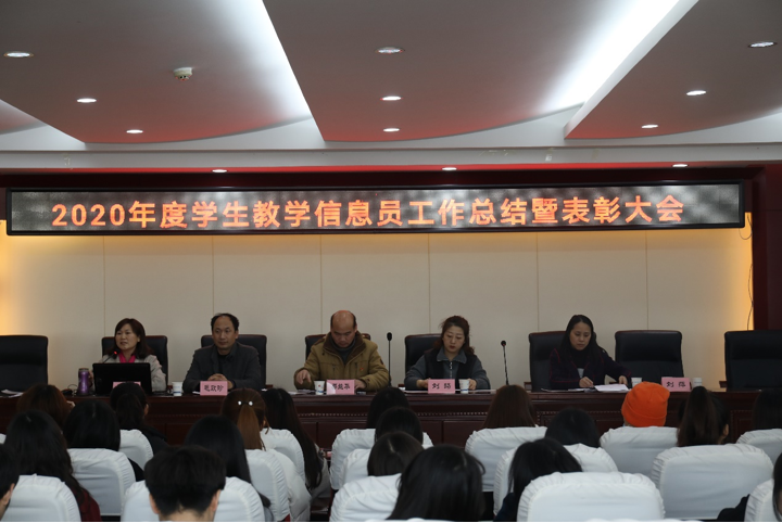 (通讯员 阙庆华 摄影 赵平波 徐林芝) 12月22日下午,我院2020年度学生教学信息员工作总结暨表彰大会在办公楼六楼学术报告厅隆重召开。本次大会由教务处(督导室)副处长阙庆华主持,易兰华副院长、教务处(督导室)毛政珍处长、刘鹄副处长、刘萍老师以及全体学生教学信息员(站长)参会。