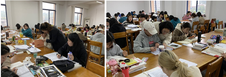 学校图书馆是同学们备考的战场。每天,经济贸易学院的辅导员老师都会抽空去看看自己班上的“崽崽”。看他们学习状态是否还在线,有没有在坚持,心里有没有烦恼……辅导员莫英老师还为班上的学生辅导员英语。一天又一天,叮嘱“注意身体、规律睡眠和饮食”是常态。