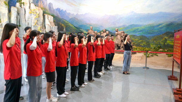 团员青年立身于旧址和纪念馆间,听着现场授课老师介绍道:“1952年8月,胡耀邦担任团中央书记,主持团中央工作10余年,他注重发现和总结推广各地青年工作中创造的先进经验和典型,推动全国青年工作生机勃勃开展,有力地服务和配合了党的中心工作。”他系统讲述了胡耀邦生平事迹、思想和人格风范,利用馆内现代手法再现了胡耀邦同志光辉而伟大的一生。每到一处,全体团员青年都驻足细观战争年代留下的书籍、照片、历史遗迹和各类生活用品,一件件弥足珍贵的历史文物和历史事件,让团员青年们深深为革命先烈坚定的政治信仰、坚强的革命意志所震撼。最后,湖南商务职院团委罗佳玲副书记带领全体团员青年郑重的重温了入团誓词。