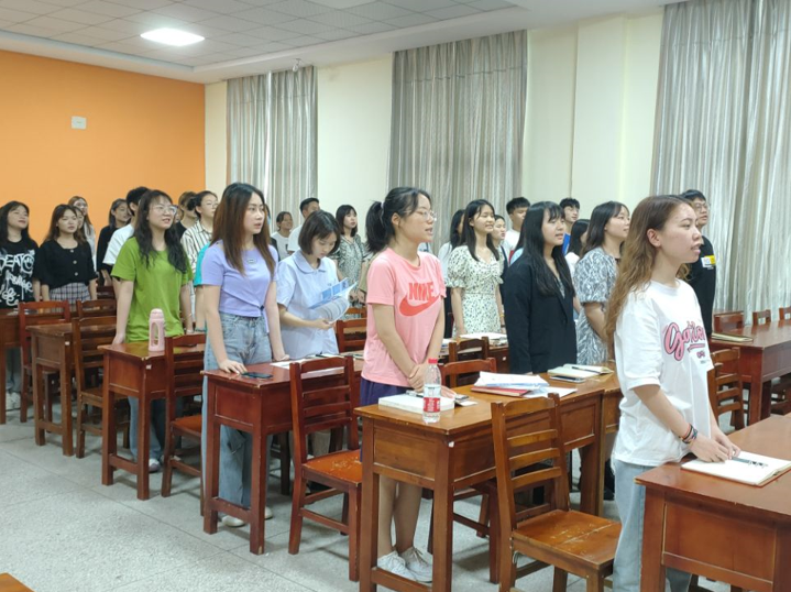 活动在庄严的《国际歌》声中拉开序幕。全体人员肃然起立,高声唱响激昂的旋律。“从来就没有什么救世主,也不靠神仙皇帝”正是前仆后继的共产党人用热血去守护、用生命去捍卫我们的国家,才换来我们今天的幸福生活。
