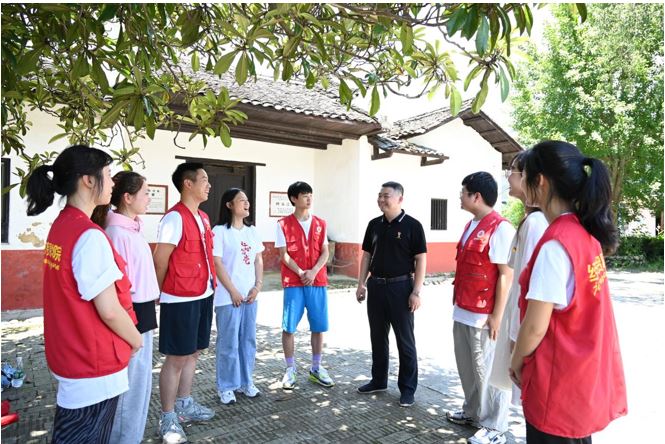 志愿者们还来到了水口桥头江家——毛泽东旧居、湖南省省级重点文物保护单位。在桥头江家旧址前坪,谢虎军以“青年一代的使命与担当”为主题为支部党员上了一堂生动的“微党课”。他勉励大家:“水口是一个红色革命圣地。我们在这里要深挖革命故事,在红色文化中汲取精神力量,做好革命历史的宣讲人,做好服务群众的贴心人,做好民族复兴的接班人”。方红梅语重心长地说:“我们来到水口,一是要为这里的人们做些实事,尽我们的力量解决他们面临的难题;二是为红色革命基地做宣传,传播红色文化,让更多的人了解水口,来水口接受红色教育。同学们有学市场营销专业的、有学连锁经营管理专业的、有学物流管理专业的、有学商务管理专业的,期待大家运用所学专业送知识下乡,用知识助力乡村振兴!”
