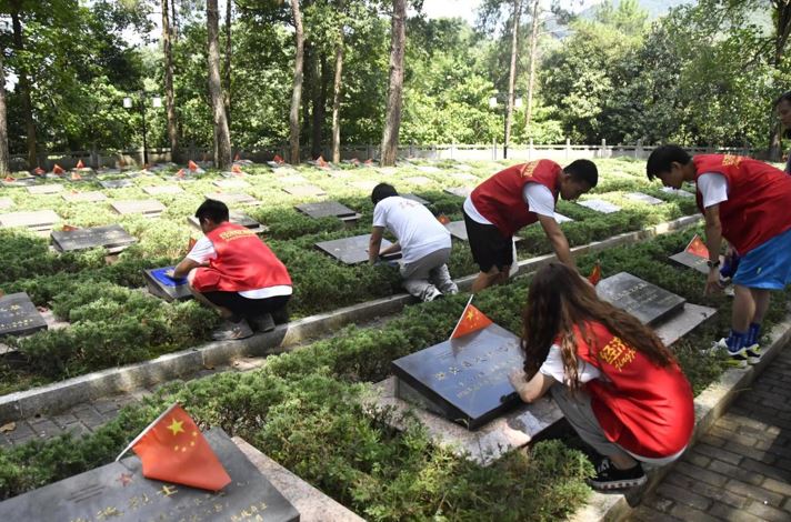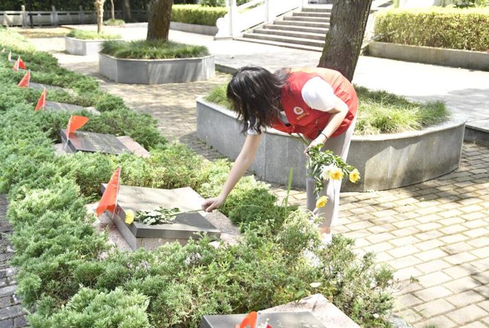 随后,志愿服务团的踏上了前往炎陵烈士陵园(原酃县烈士陵园)的红色之旅。志愿者们纷纷拿起手中的抹布走向烈士墓冢,认真细致的擦拭着烈士雕像和墓碑上的灰尘,并俯身将倾倒的小国旗整理好,使其高高飘扬在烈士墓碑的上方。清扫过后,志愿者们集体列队默哀,默默对革命先烈们说:“山河已无恙,人间皆安,如今的盛世中华如您所愿!”我们将一株株盛开的菊花轻轻地放在烈士墓碑旁,缅怀先烈,寄托哀思。一阵微风吹过大家的脸颊,仿佛在轻声的表达谢意。