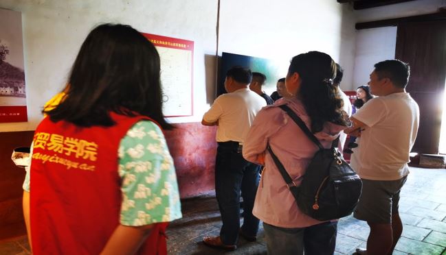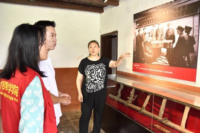(通讯员 方红梅 陈灿)历史是最好的教科书,红色资源是最好的精神之源。2021年7月9日,湖南商务职业技术学院经济贸易学院学工党支部暑期“三下乡”志愿服务团抵达炎陵县水口镇,炎陵县文旅局文物股长肖宇热情接待了志愿服务团一行,并带领志愿服务团走进了本次红色宣讲基地炎陵县水口镇叶家祠——毛泽东主持我军历史上首次连队建党活动的旧址。