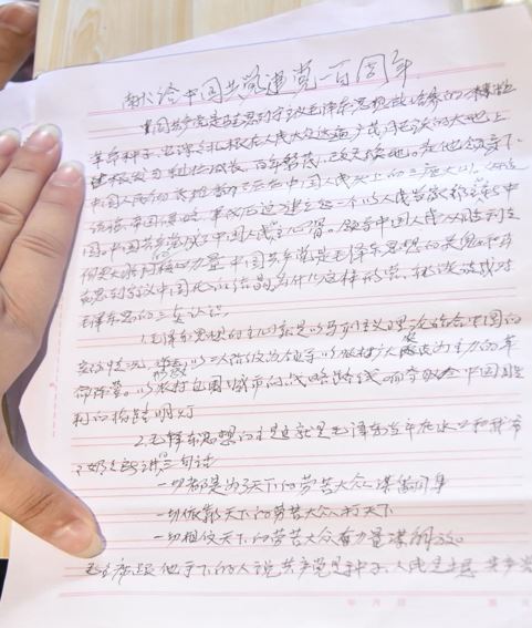 ▲江爷爷写下的《献给中国共产党建党一百周年》书信