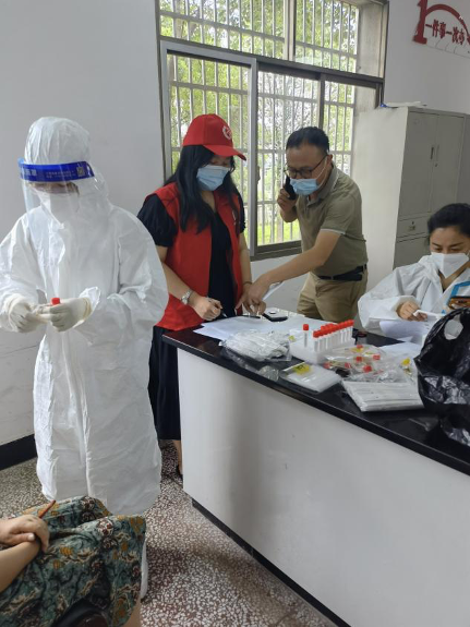 从2021年7月30日开始,湖南长沙宁乡市区突发了新冠疫情,要求全体宁乡人民集体做核酸检测进行排查?;峒蒲г?9会计1班邹沐芸同学不畏困难挺身而出,以志愿者的身份负责在菁华铺镇府做鼻拭子采集时维持秩序,对来往人员进行信息登记、测量体温。她身着志愿者马甲,在炎炎夏日任劳任怨。她表示,志愿服务并不是单纯的奉献,更是实现自我价值的方式之一;当奉献自己一份力量的时候,心里会觉得很幸福。