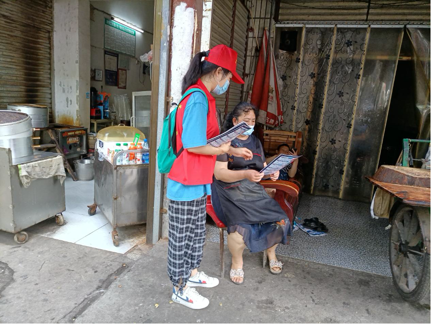 会计学院19会计3班黄喜欢同学也在与疫情搏斗。2021年8月11日,冷水江市疫情防控工作刻不容缓,她在听到冷水江市宣传部的志愿者招募,第一时间报名参加,她身着红色小马甲、头戴小红帽与战友们在冷水江市各社区街道、超市、店铺的疫情防控知识宣传及劝导工作,劝导市民:“戴口罩,勤洗手,一米线,不聚集”,并贴心为未戴口罩的老人、小孩送上口罩,叮嘱他们一定要切记“防疫千万条,口罩第一条”,广泛宣传当前疫情防控政策知识,劝导市民少出门不扎堆,提升了大家的疫情防控意识。她深知身为一名新时代大学生在面对国家有难,要站在人民需要的地方,疫情面前没有旁观者,她勇于担当,无私奉献,向所有人展示出了青年学生的良好精神面貌和当代大学生的风采。