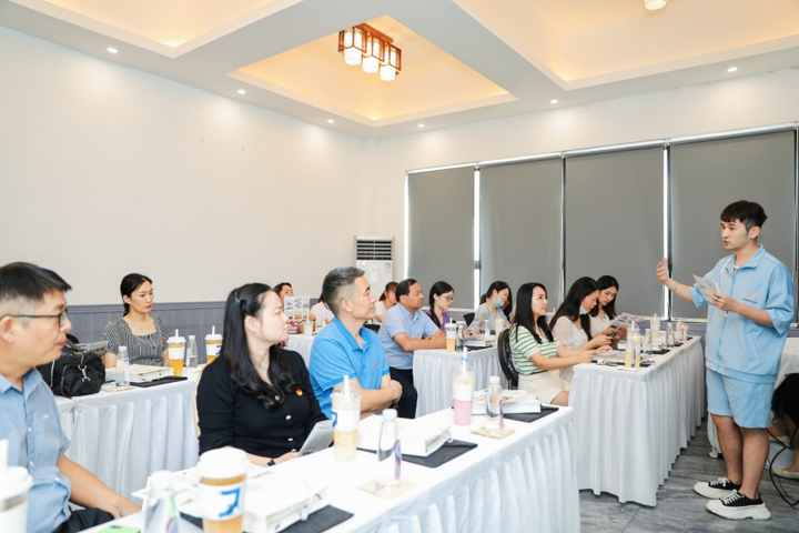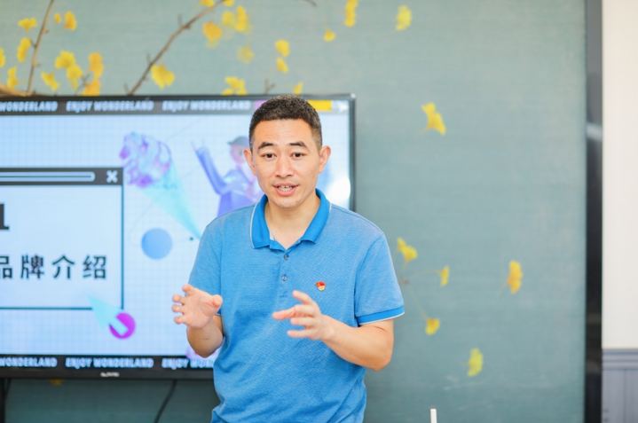 参观结束,享梦游创始人彭士平及工作人员与教师党员进行了面对面的座谈交流。在交流中,彭士平为大家详细介绍了享梦游的使命、愿景、定位、价值观、模式与布局,展示了享梦游的企业文化、发展历程、取得成绩。