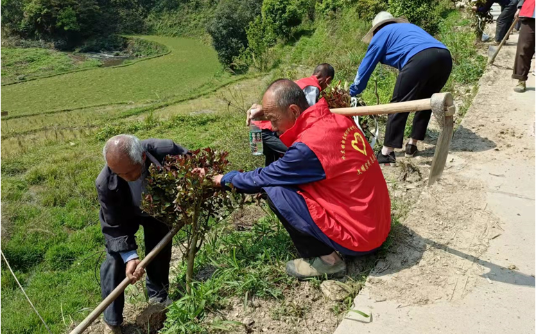 4月11日上午,溆浦县水东镇标东垅村三个党支部数十名党员在村部集合,在湖南商务职院乡村振兴驻村工作队和村党委的组织下,前往村口冷水溪至到麻池坳和石琴垅的村主干道上,开展“春植一棵苗,秋收万点红”为民办实事主题党日活动,为标东垅村添绿,助力乡村振兴。