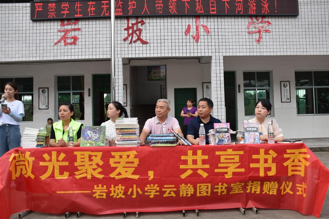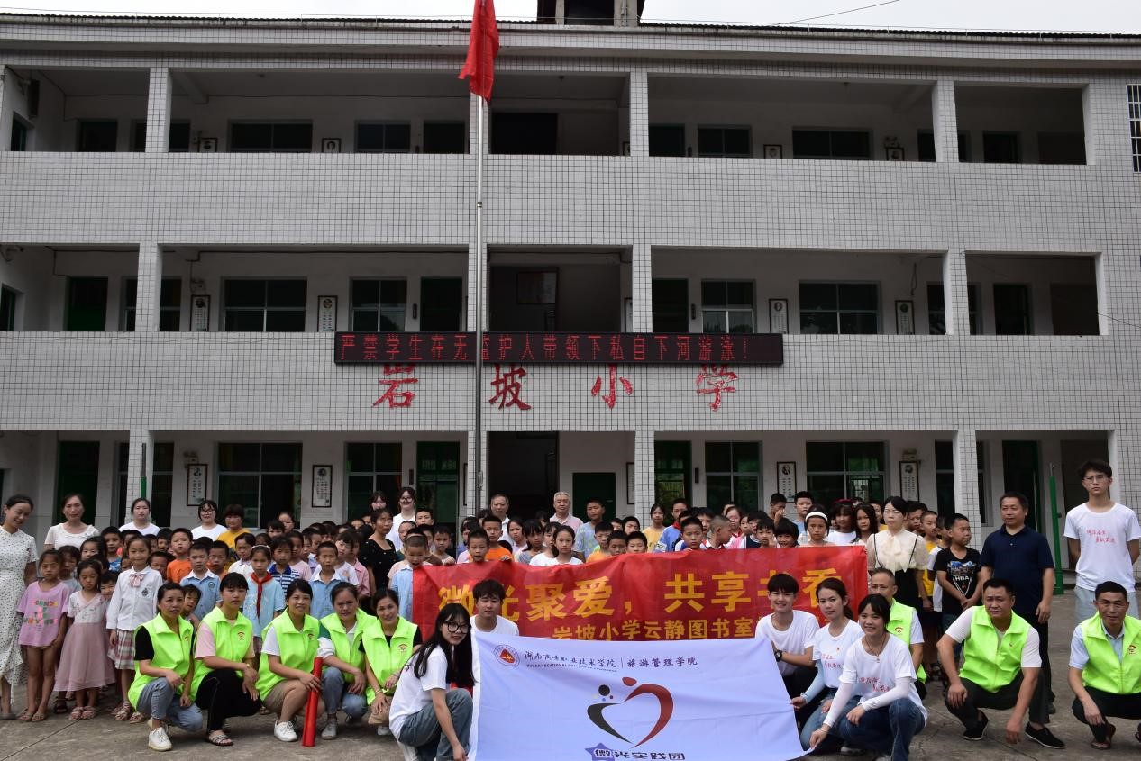 2022年7月7日上午,为弥补山区图书资源的匮乏、丰富留守儿童的精神世界,培养留守儿童积极阳光的健康心态,旅游管理学院“微光心力量赋能向未来”暑期三下乡实践团队赴安化县东坪镇开展“微光聚爱 共享书香”岩坡小学云静图书室捐赠活动,并带来了近万元图书和教学物资。