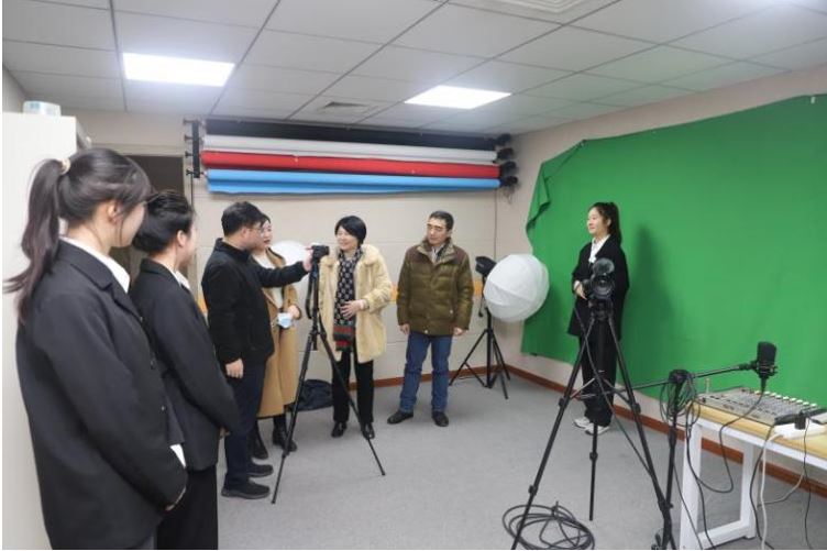 2022年12月6日,湖南商务职业技术学院电子商务学院学工党支部在大学生网络思政中心开展“党的二十大,我来学”接力讲的视频录制。学院党委委员、副院长禹明华,学生工作部部长杨明莅临指导,吴苾老师、侯妍竹老师带领参观录制现场。