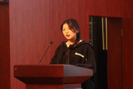 党总支副书记侯妍竹对获奖班级和个人就一年来所取得的成绩表示了祝贺,强调榜样力量的重要性,号召同学们努力学习他们积极向上、努力进取的精神,做有本领、敢担当、好作风的大学生。