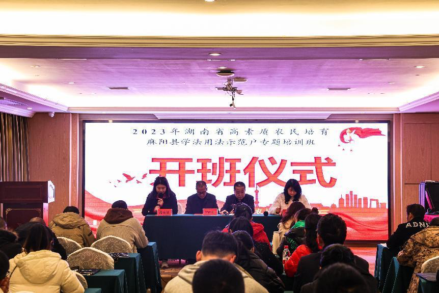 12月27日,麻阳县2023年农村学法用法示范户培训班开班仪式顺利举行。本期培训班是由湖南省农业农村厅、麻阳县农业农村局主办,湖南商务职业技术学院承办,培训期为5天。