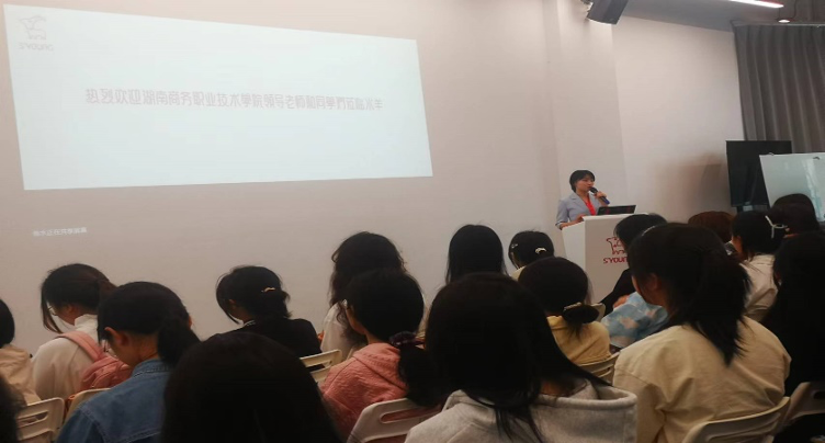 同学们首先参观了水羊集团创新创业园,了解了水羊集团产品特色和园区打造,观看了水羊集团宣传片,初步认识了水羊集团和美妆行业。然后,水羊集团品牌服务经理和人力资源部经理通过专家讲座分别介绍了公司的发展历程、品牌建设、运营管理、经营成效以及未来趋势。