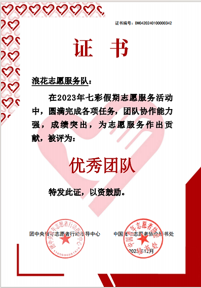 自2021年成立以来,该志愿服务队在商务信息技术学院党总支及学工支部的指导下,加强“党建带团建”,推动“小我融于大我”社会实践育人行动。与湖南雷锋纪念馆、望城铜官街社区共建大中小学思想政治教育一体化实践教育基地,师生党员带领共青团员、青年学生开展文明劝导、义务维修、主题社会实践等形式多样的志愿服务活动,参与志愿者超过1000人次,志愿服务时长累计超过11000小时,其中学工支部预备党员李志强为四星志愿者,发展对象王崇辉为三星志愿者,入党积极分子宾婉怡为五星志愿者。三年来,该服务队获校级奖励十余项,拍摄的微视频《甘当小草沃中华》获省级奖励两项,所属的“浪花”志愿服务队获2023年获团中央“七彩假期”优秀团队,指导教师王珏立项围绕志愿服务主题立项课题和项目2项。师生在社会实践中获得感不断提高,在作贡献中不断坚定理想信念、增长知识才干、锤炼品德意志。