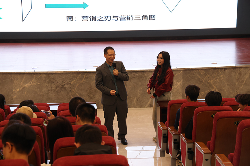 本次活动邀请了中国实战派营销学者、经济学硕士、企业管理博士、营销博士后、湖南工商大学市场营销系詹志方教授来给学生进行题为“创新营销与创业”的创业意识培育讲座,吸引了市场营销专业包括楚怡班在内的数百名学生前来学习,詹教授从实战的角度出发,结合案例现身说法,并邀请学生现场互动,点燃了在场学生,现场氛围热烈,两个小时的讲座让学生意犹未尽,圈粉无数。