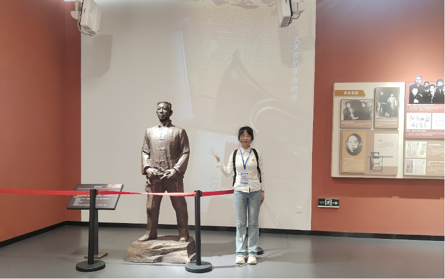 10月31日下午,在望城区郭亮文化纪念园——郭亮生平业绩陈列室内,湖南商务职业技术学院“红色记忆”实践小分队成员郑梅深情开讲。她的身旁,革命烈士郭亮的塑像静静挺立,让人感受到一种强大的精神力量扑面而来。他那坚毅的眼神,似乎在诉说着曾经的奋斗与牺牲。随着郑梅的讲述,大家眼前浮现出一幕幕革命场景:在那个动荡的年代,郭亮挺身而出,从他领导工人运动,到为了理想信念不屈不挠地抗争,直至面对屠刀慨然赴死。每一个场景都让人对他的英勇事迹肃然起敬,耳畔再次响起他“爱国岂能怕挂头”的铮铮誓言。