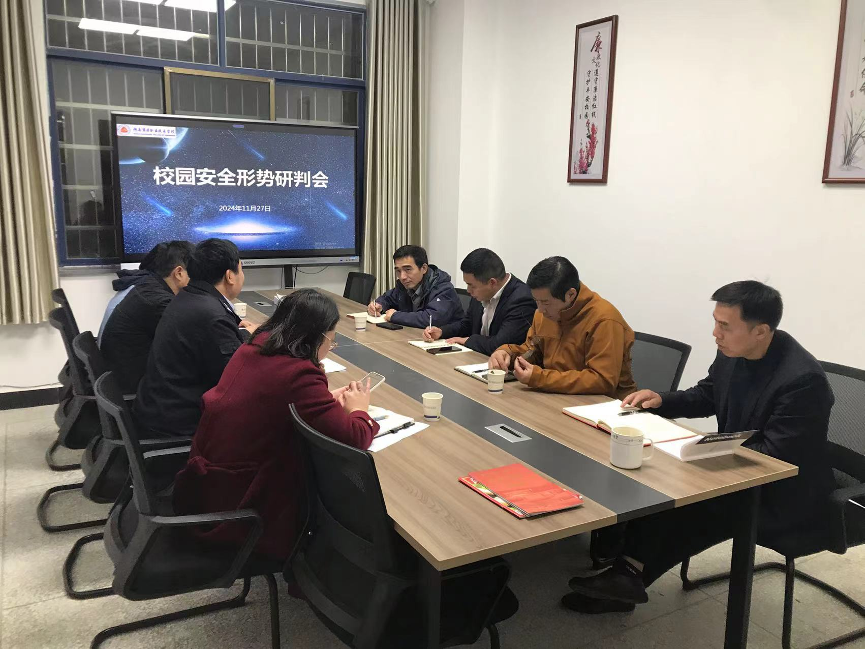 为深入推进平安校园建设,安排部署有针对性的风险化解工作,确保校园安全稳定,11月27日,学院召开校园安全形势研判会。保卫部、学生工作部、后勤管理处、校企合作与发展规划处和物业公司相关负责人参加了会议,天顶派出所民警吴光辉也应邀出席?;嵋橛杀N啦坎砍ぱ蠲髦鞒?。