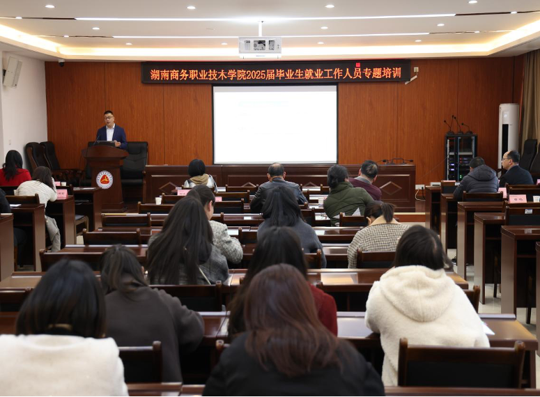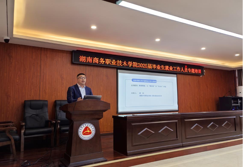 为全面贯彻落实教育部、教育厅有关就业工作要求,建立一支稳定、专业、高效的就业工作队伍,帮助就业工作人员了解就业形势,提升就业指导理念,增强就业服务能力。3月17日下午我院在崇理楼109开展了2025届毕业生就业工作人员专题培训。招生就业处全体工作人员,各二学院院长、总支书记、就业干事、毕业班级辅导员参加了培训。此次培训邀请到湖南外贸职业技术学院招生就业处处长杨剑作指导讲座。