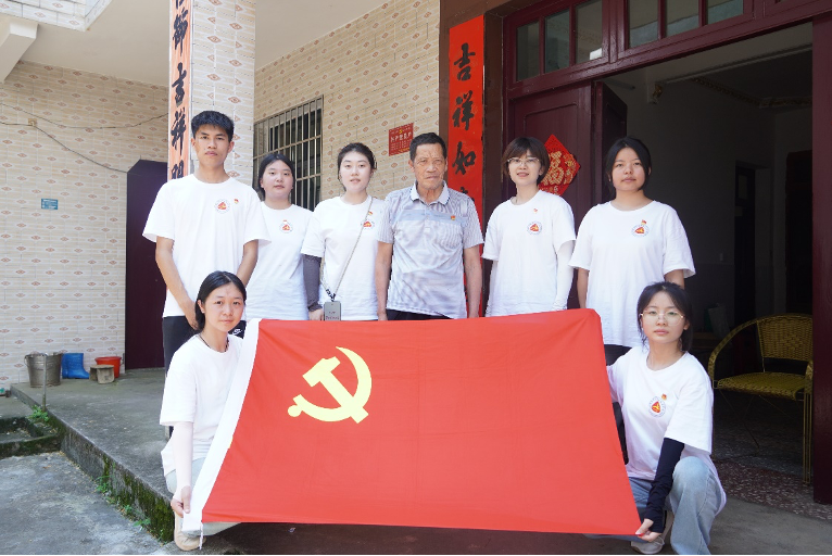 在中国共产党成立104周年之际,7月5日,湖南商务职业技术学院电子商务学院“青青火花”志愿服务队走进邵阳市城步苗族自治县金紫乡金山社区,开展“寻访红色根脉”主题教育实践活动,在乡村小院里上了一堂别开生面的党课。
