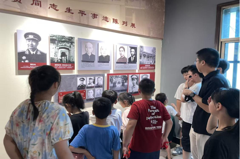 接着,队伍走到巷尾,袁仲贤故居坐落于铜官古街尽头的半山坡上,这座青砖黛瓦的湘中民居,见证了这位共产主义战士的成长历程。袁仲贤是新中国著名外交官和军事将领,曾担任华东野战军政治部主任、首任驻印度大使、外交部副部长等要职。故居记录了其从军旅生涯到外交工作的传奇经历,并通过生平陈列室展示了相关勋章、老报纸等珍贵文物,反映了中国革命与建设时期的历史记忆。孩子们认真聆听这位共产主义战士从军事指挥员到新中国外交官的传奇人生。从硝烟弥漫的战场到风云变幻的外交舞台,袁仲贤忠诚奉献的崇高品格,让孩子们对共产党员的责任与担当有了更深刻的理解。