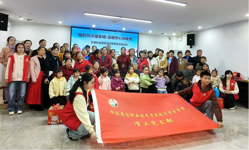 岁岁重阳,今又近重阳。为传承中华民族尊老敬老的传统美德,丰富社区老年群体的精神文化生活,2025年10月23日,湖南商务职业技术学院经济贸易学院学工党支部联合经济贸易学院团总支协助湘江新区天顶街道天源社区共同开展了“银龄风采耀星城·温暖社保伴晚情”重阳节主题活动。
