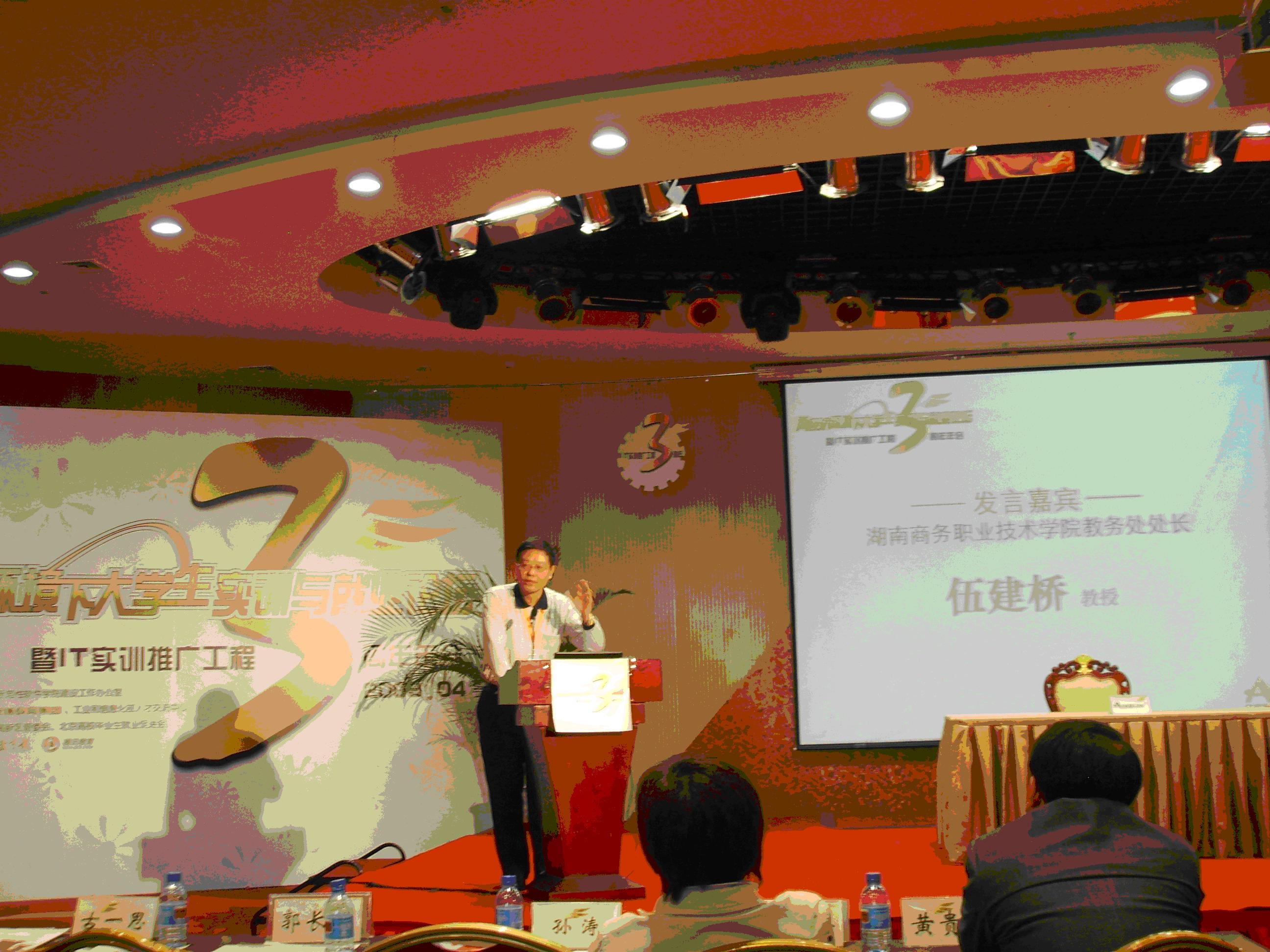 我院教务处伍建桥处长和信息技术系刘灿勋主任应邀参加了此次盛会。在会议主席台上,伍教授代表学院做了校企合作的嘉宾发言。