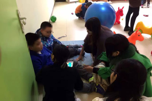 在星学园教育机构,志愿者们与在场家长一起参加了自闭症儿童专业知识指导的现场培训,掌握了一些帮助自闭症儿童恢复的基本方法。接受培训后,志愿者开始和孩子们互动起来。他们通过手势、语言、表情等让孩子们感受到真诚和温暖。轻抚孩子的脑袋、伸手护着孩子的肩膀、微笑着跟他们交流……孩子们也很有礼貌地表达他们的谢意,有的还送出自己制作的小礼物表示对志愿者的喜爱。
