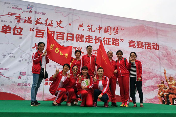 为庆祝中国工农红军长征胜利80周年,省直工会组织了“重温长征史、共筑中国梦”省直单位“百团百日健走长征路”竞赛活动,在学院党委领导下和各部门支持下,学院工会组织了13名教职工代表湖南省供销社参赛。